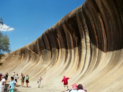 Imagine a giant surf wave of 14 metres high and 110 metres long about to crash in the outback. What a unique natural attraction! Aptly named Wave Rock, the ‘wave’ is located in the country town of Hyden and is composed of multi-coloured granite shaped over time by the gradual erosion of the softer rock below the upper edge. It is believed to be over 2,700 million years old.